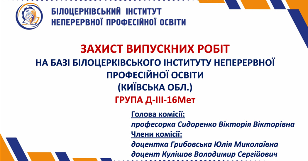 З 02 по 20 березня 2026 року на базі Білоцерківського інституту неперервної професійної освіти пройшли курси підвищення кваліфікації слухачі за категоріями: «Методисти закладів професійної...