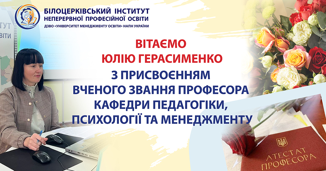 ВІТАЄМО ЮЛІЮ ГЕРАСИМЕНКО З ПРИСВОЄННЯМ ВЧЕНОГО ЗВАННЯ ПРОФЕСОРА