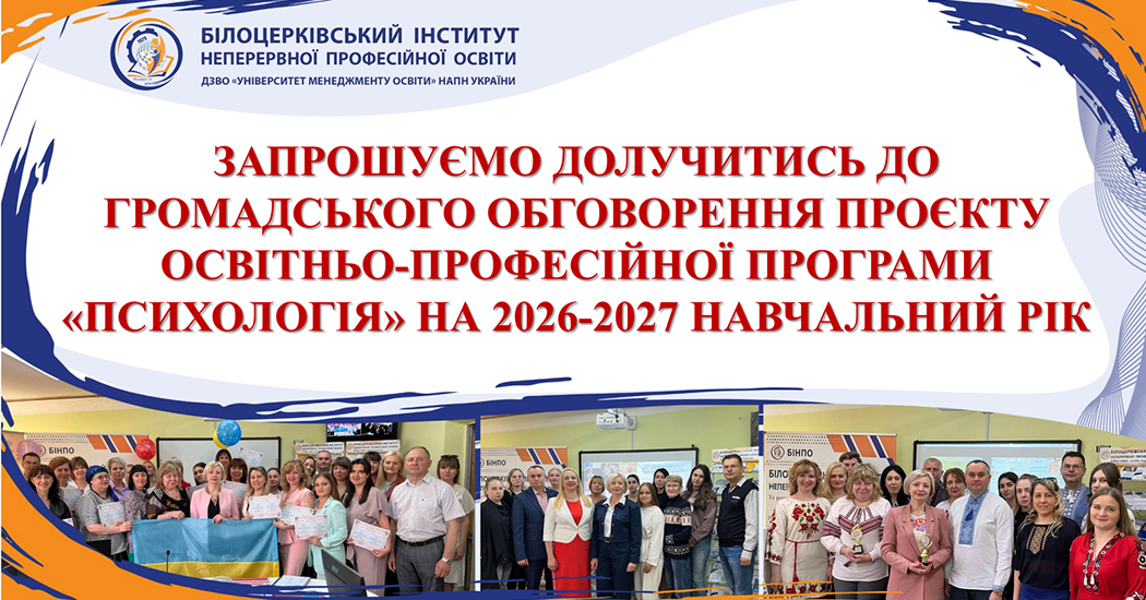 ЗАПРОШУЄМО ДОЛУЧИТИСЬ ДО ГРОМАДСЬКОГО ОБГОВОРЕННЯ ПРОЄКТУ ОСВІТНЬО-ПРОФЕСІЙНОЇ ПРОГРАМИ «ПСИХОЛОГІЯ» НА 2026-2027 НАВЧАЛЬНИЙ РІК