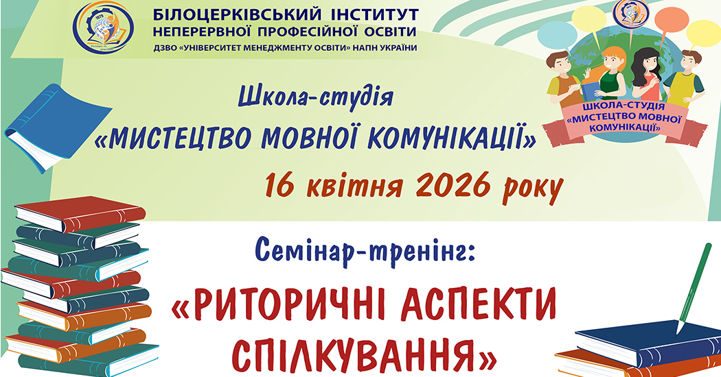 16 квітня 2026 року у Білоцерківському інституті неперервної професійної освіти ДЗВО «Університет менеджменту освіти» НАПН України відбувся семінар-тренінг «Риторичні аспекти...