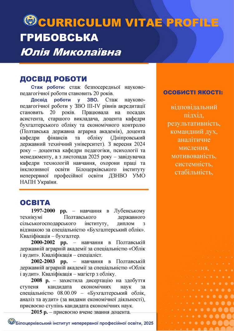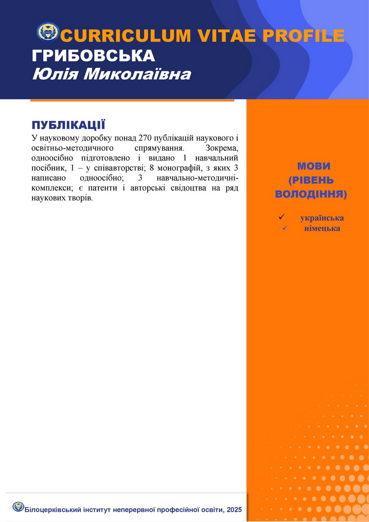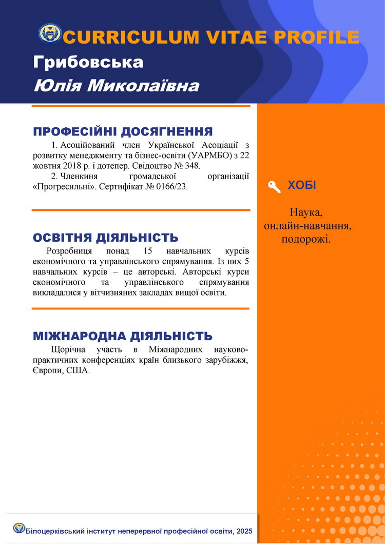 ГРИБОВСЬКА ЮЛІЯ МИКОЛАЇВНА