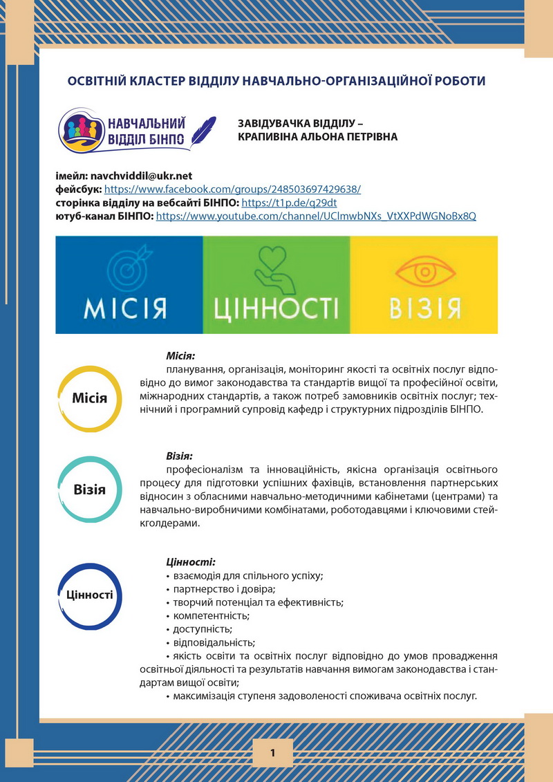 ЦІННОСТІ КАФЕДРИ