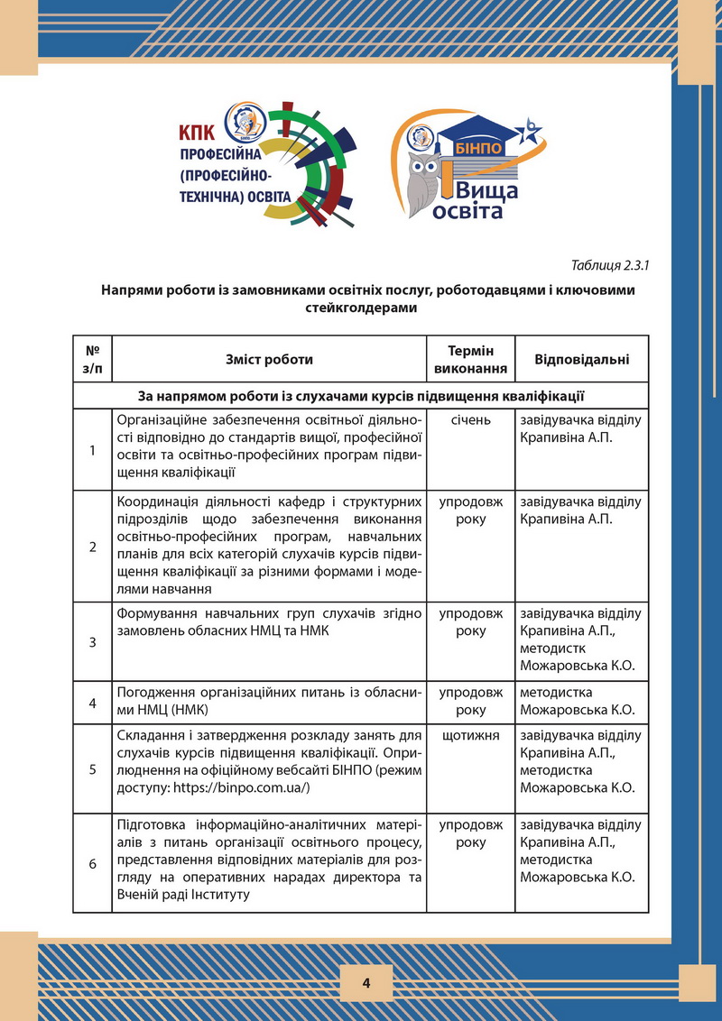 Освітньо-професійні програми підвищення кваліфікації