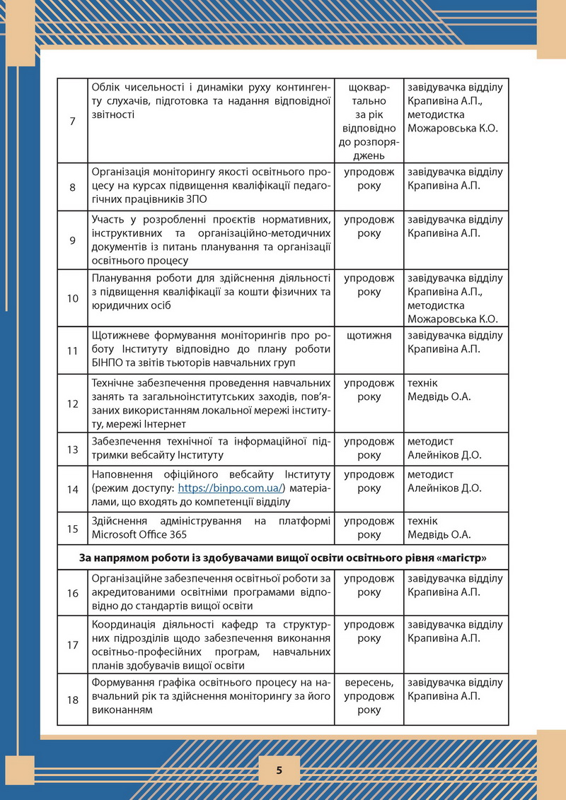 ПЛАН РОБОТИ КАФЕДРИ