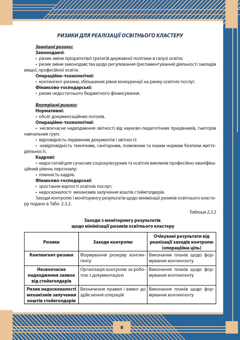 РИЗИКИ РЕАЛІЗАЦІЇ ОСВІТНЬОГО КЛАСТЕРУ
