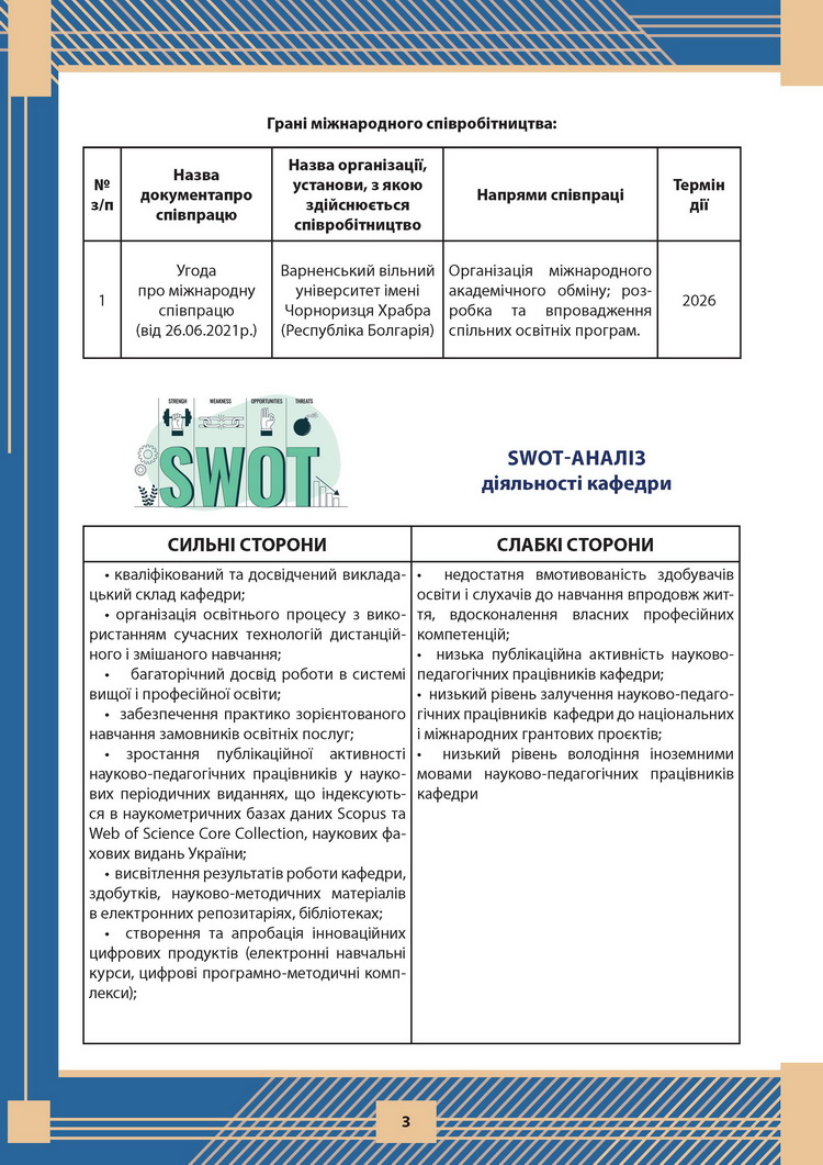 3BIT ПРО РОБОТУ КАФЕДРИ ПП та М