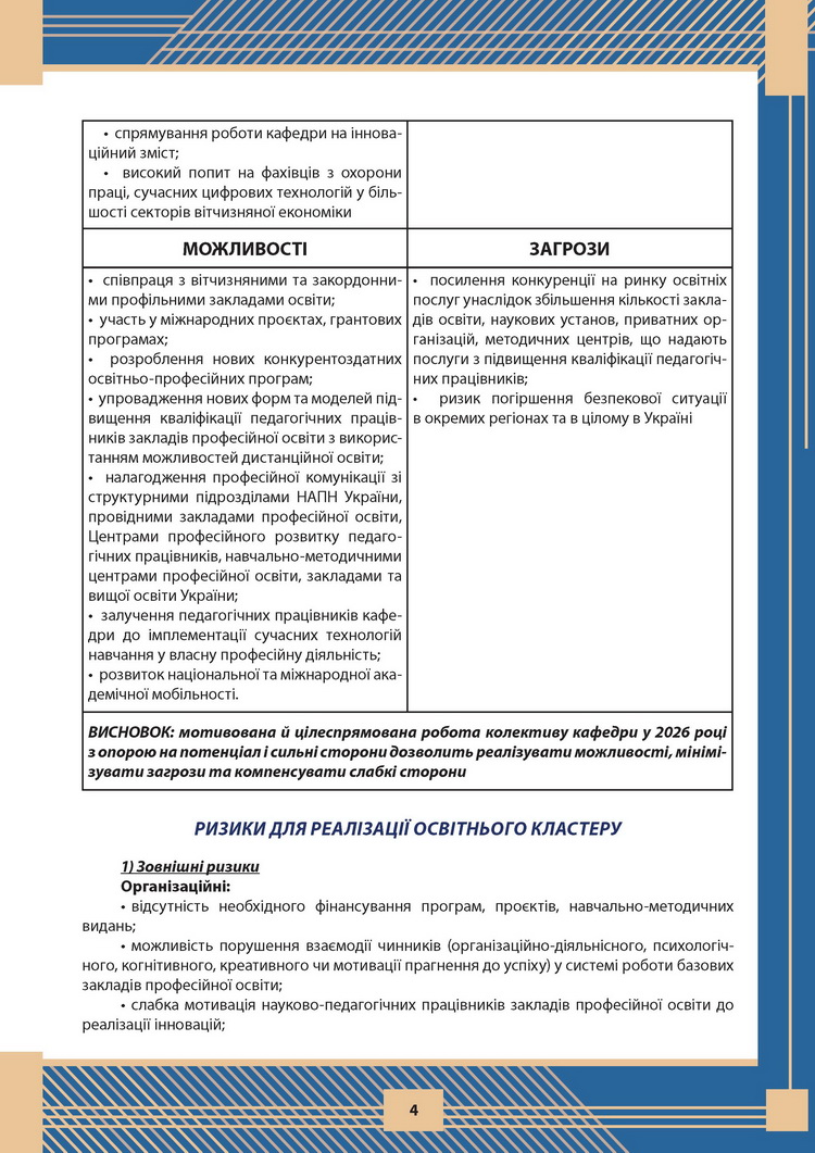 РИЗИКИ РЕАЛІЗАЦІЇ ОСВІТНЬОГО КЛАСТЕРУ
