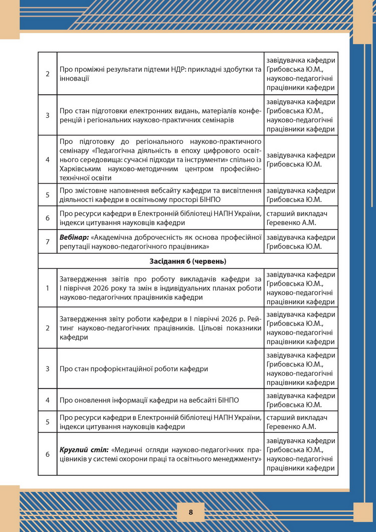 ЗАСІДАННЯ КАФЕДРИ У 2025 РОЦІ