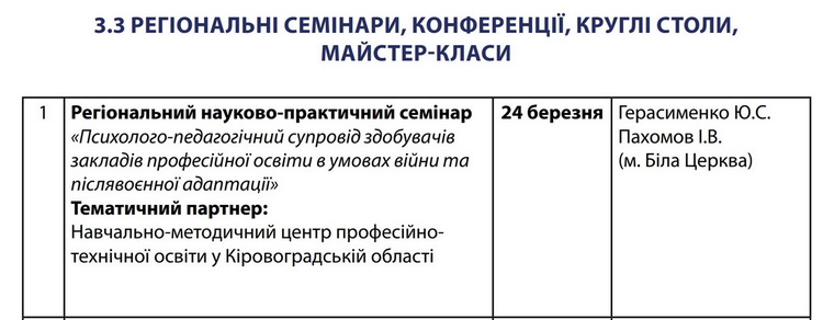МОНІТОРИНГ ПРОВЕДЕННЯ МАСОВИХ НАУКОВО-ПРАКТИЧНИХ ЗАХОДІВ