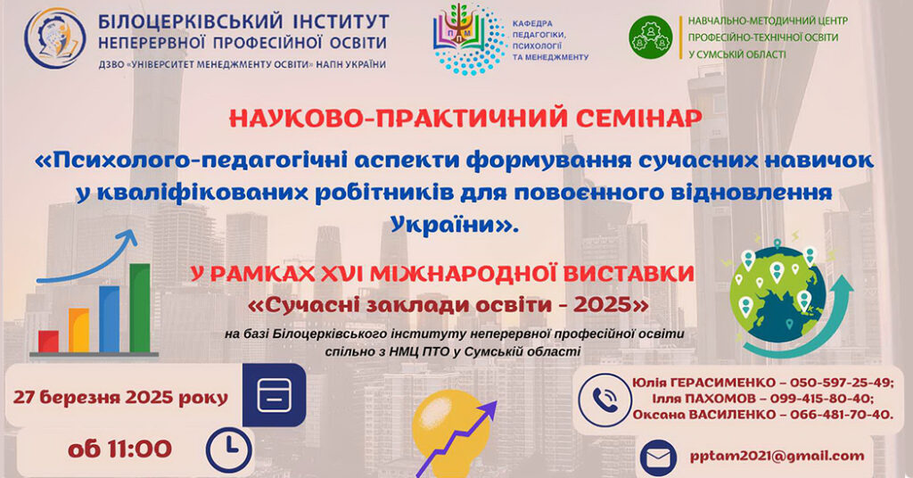 20 березня 2025 року викладачі кафедри педагогіки, психології та менеджменту Білоцерківського інституту...