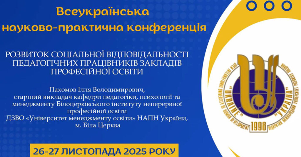 26 листопада 2025 року Ілля Пахомов, старший викладач кафедри педагогіки, психології та менеджменту Білоцерківського...