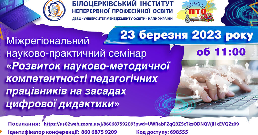 23 березня 2023 року об 11.00 Білоцерківський інститут неперервної професійної освіти ДЗВО «УМО» НАПН...