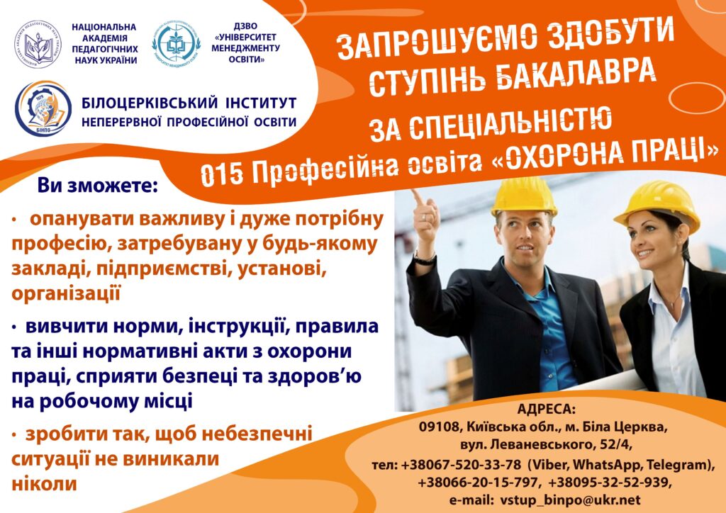 ЗАПРОШУЄМО ЗДОБУТИ СТУПІНЬ БАКАЛАВРА ЗА СПЕЦІАЛЬНІСТЮ «ОХОРОНА ПРАЦІ»