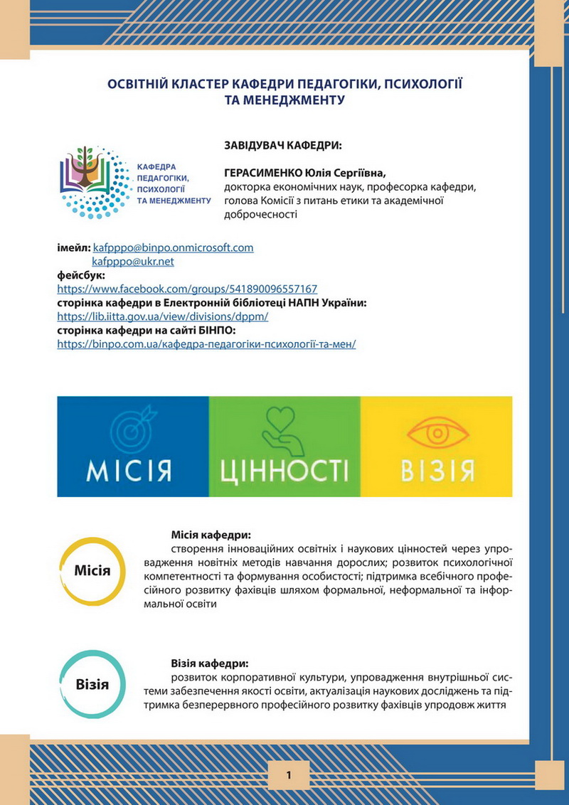 Кафедра педагогіки, психології та менеджменту Department of Pedagogy, Psychology and Management