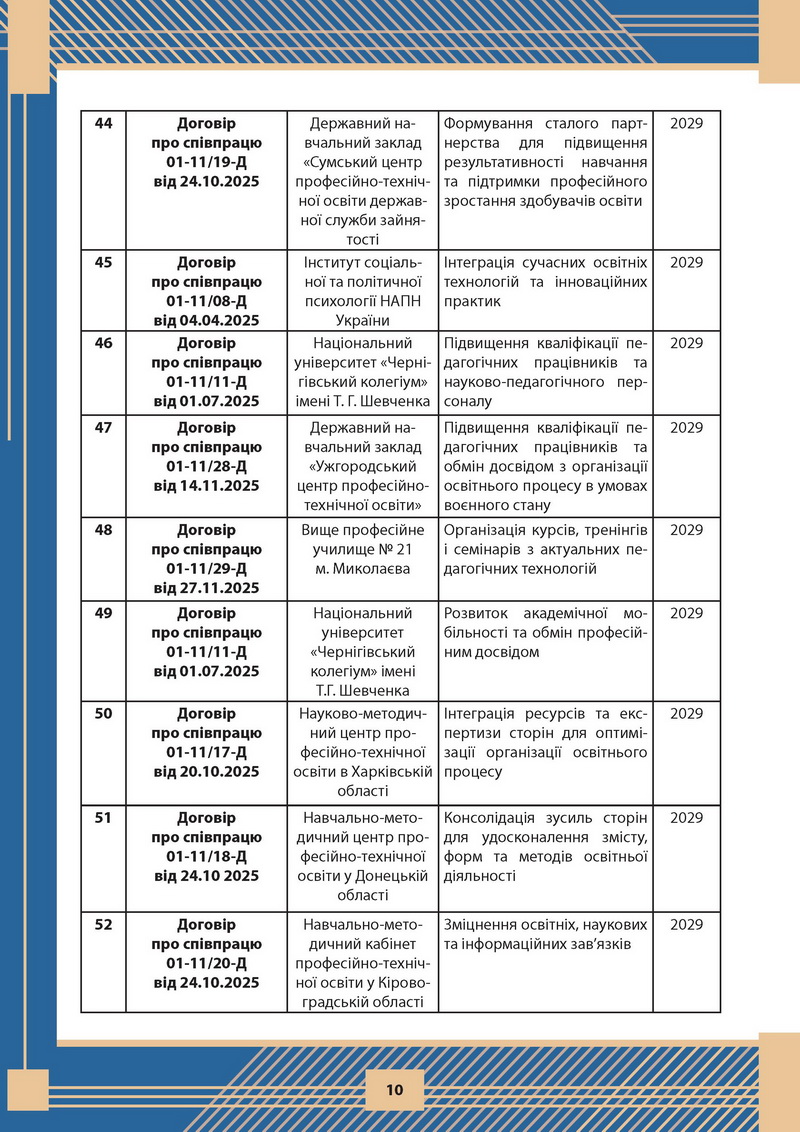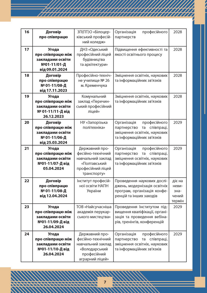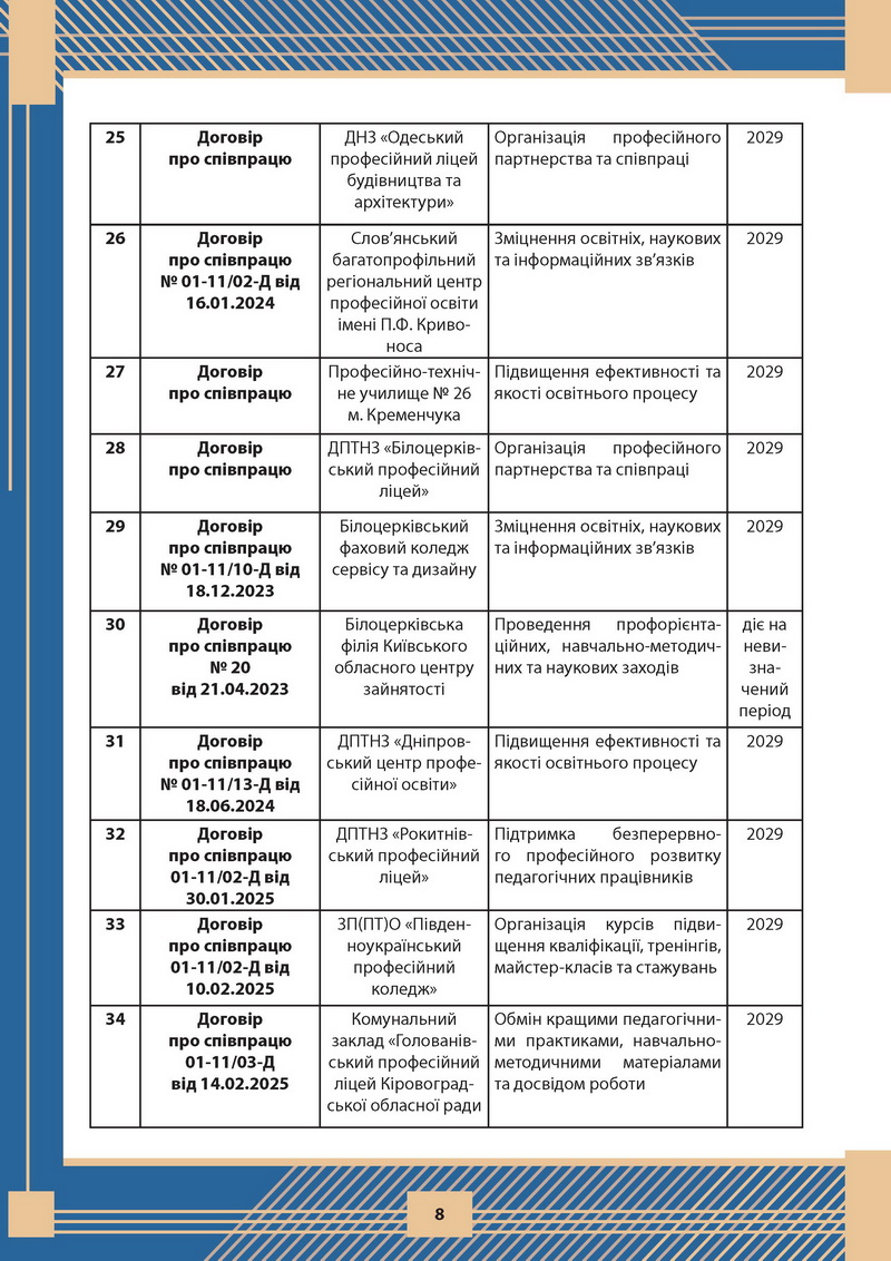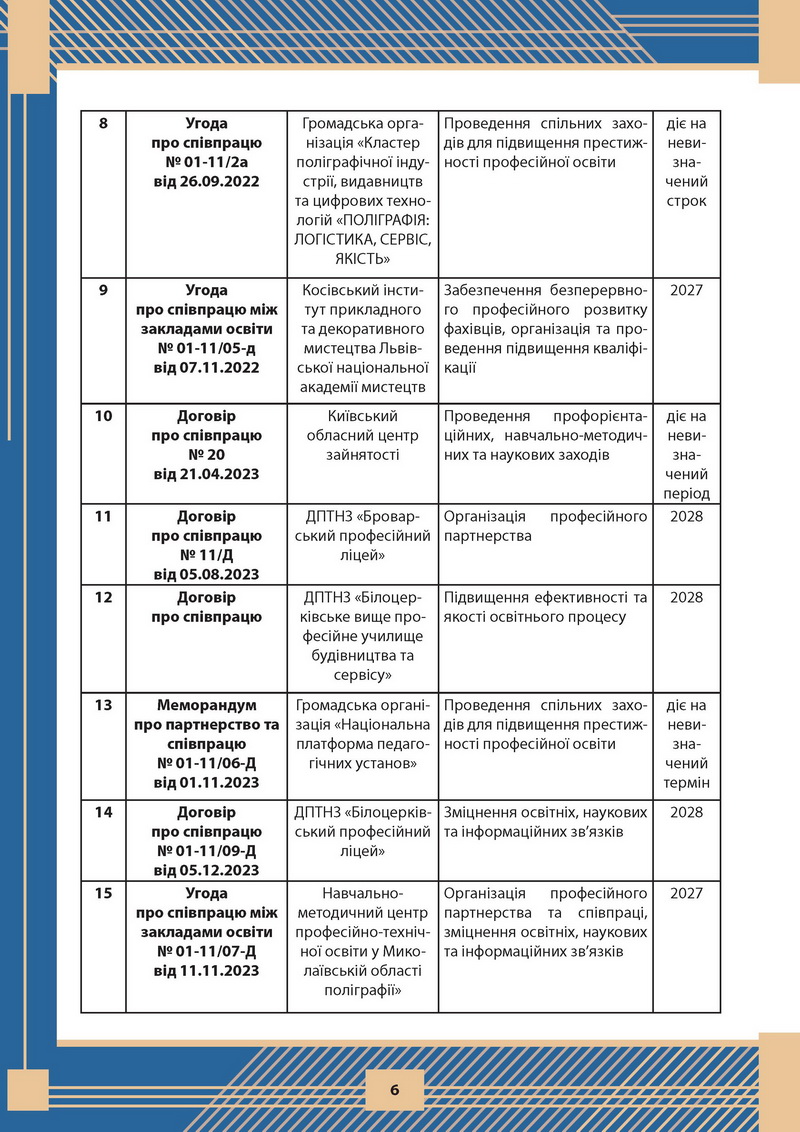 СПІВПРАЦЯ ІЗ ЗАКЛАДАМИ ПРОФЕСІЙНОЇ ОСВІТИ, ОСВІТНІМИ УСТАНОВАМИ ТА ГРОМАДСЬКИМИ ОРГАНІЗАЦІЯМИ