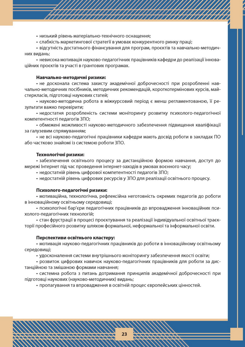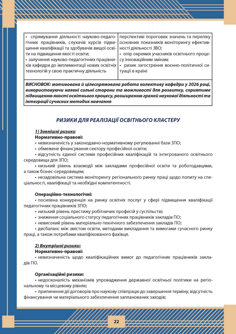 РИЗИКИ РЕАЛІЗАЦІЇ ОСВІТНЬОГО КЛАСТЕРУ
