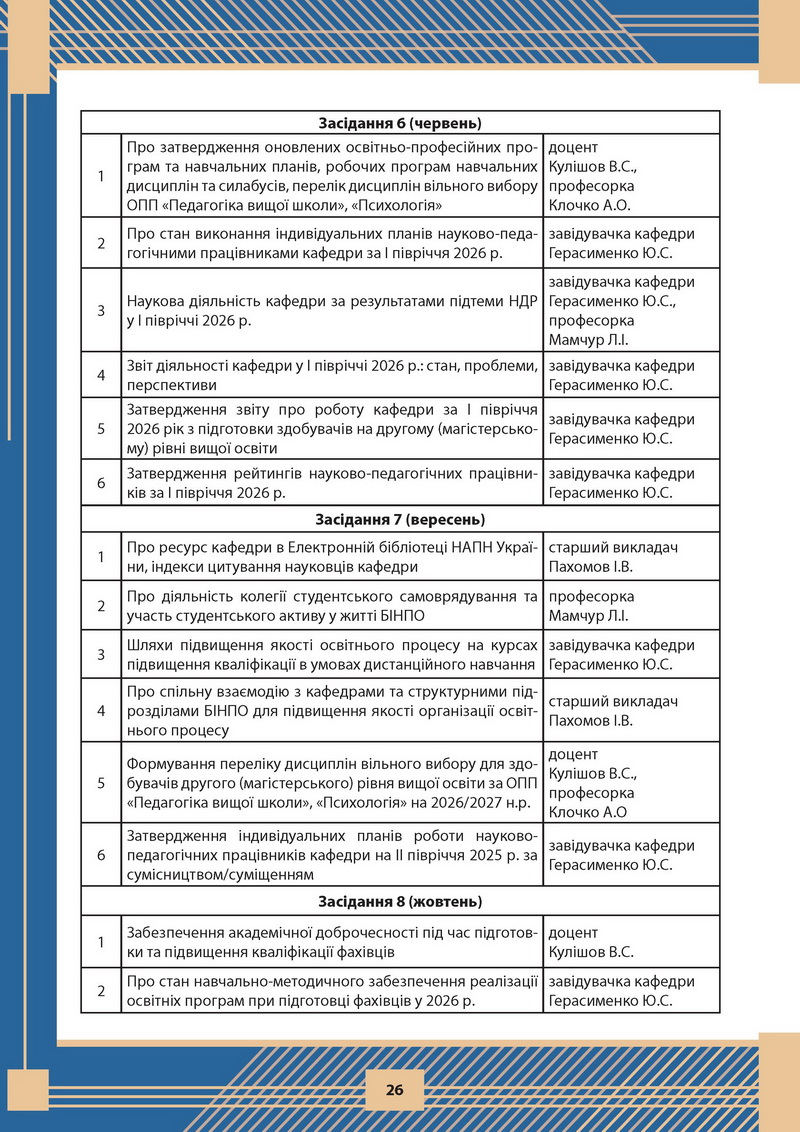 ЗАСІДАННЯ КАФЕДРИ У 2026 РОЦІ