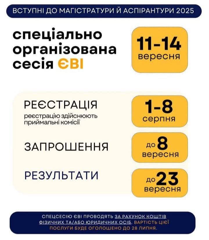 Спецсесію ЄВІ проводять за рахунок коштів фізичних та/або юридичних осіб. Вартість цієї послуги буде оголошено до 28 липня.