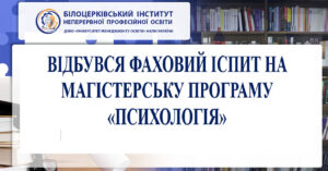 Із 30 по 31 липня 2025 року у Білоцерківському інституті неперервної професійної освіти ДЗВО «УМО» НАПН України відбувся фаховий іспит для вступників за спеціальністю С4 «Психологія» галузі знань С «Соціальні науки, журналістика, інформація та міжнародні відносини» освітньо-професійна програма «Психологія».
