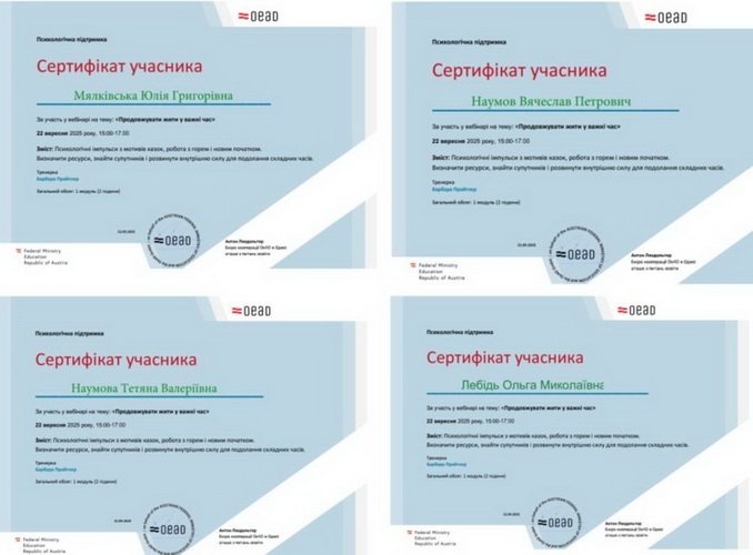 Після завершення вебінару його учасники подякували організаторам та докторці Барбарі Прайтлер за теплу та дружню атмосферу, а також за надзвичайно корисну й актуальну інформацію, а вони, у свою чергу, відмітили їх активність та вмотивованість.