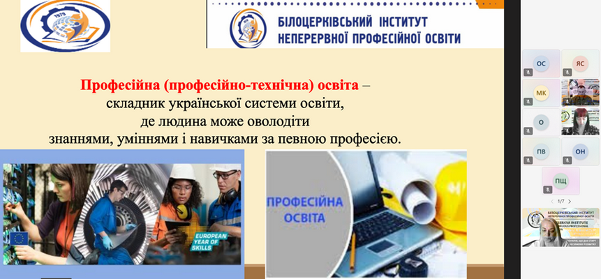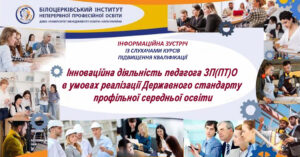 23 вересня 2025 року у Білоцерківському інституті неперервної професійної освіти ДЗВО «Університет менеджменту освіти» НАПН України відбулася інформаційна зустріч на тему «Інноваційна діяльність педагога ЗП(ПТ)О в умовах реалізації Державного стандарту профільної середньої освіти» для викладачів професійно-теоретичної підготовки та майстрів виробничого навчання ЗП(ПТ)О, котрі проходять курси підвищення кваліфікації на базі БІНПО. Понад 70 працівників закладів професійної (професійно-технічної) освіти Дніпропетровської області взяли долучилися до заходу.