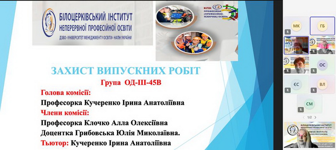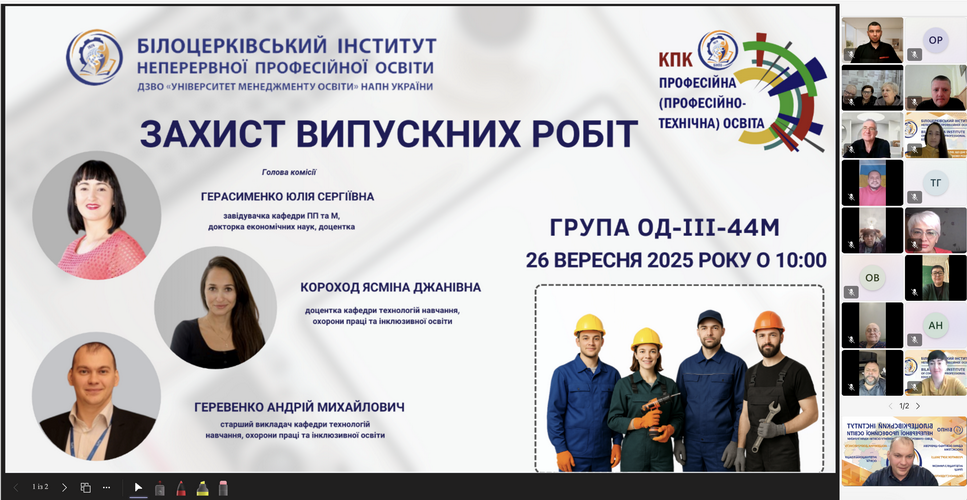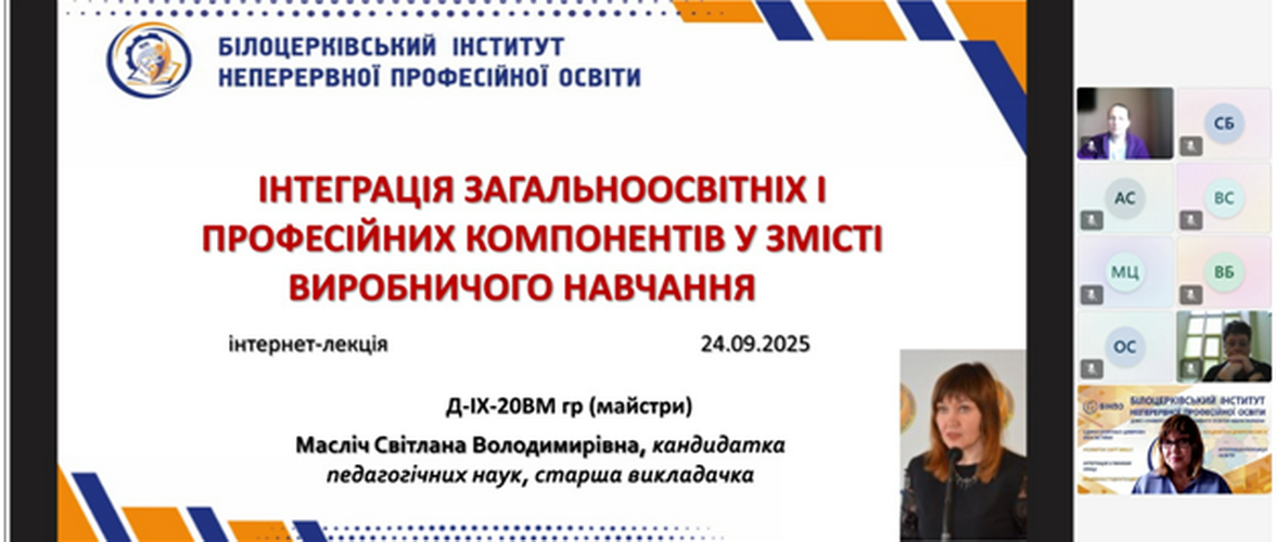 Із 22 по 26 вересня 2025 року на базі Білоцерківського інституту неперервної професійної освіти ДЗВО «УМО» НАПН України за очно-дистанційною і дистанційною формами навчання пройшли курси підвищення кваліфікації педагогічні працівники закладів професійної (професійно-технічної) освіти із Дніпропетровської, Київської, Черкаської, Кіровоградської, Харківської, Сумської, Донецької областей.
