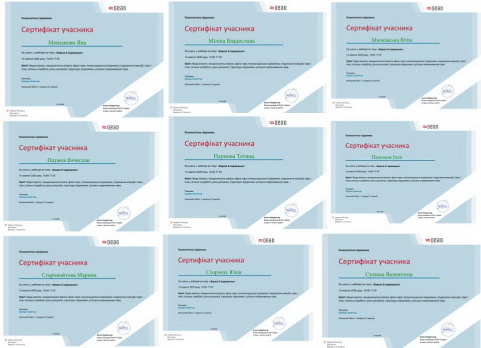 Вважаємо, що вебінар надав багато корисної та цікавої інформації для викладачів кафедри та здобувачів вищої освіти спеціальності «Психологія», дозволив їм глибше зрозуміти сутність психологічної допомоги особам, які зазнали втрат.