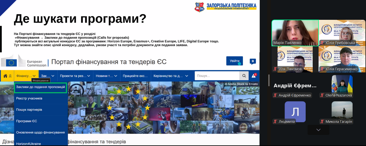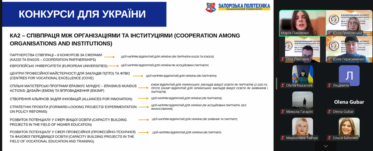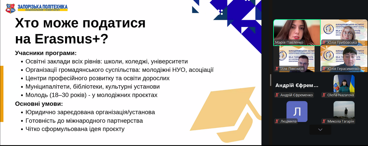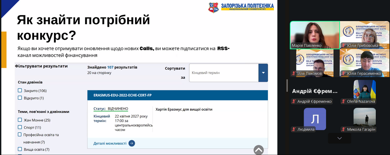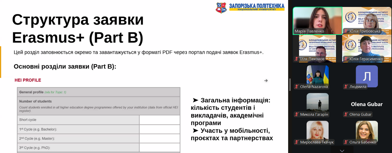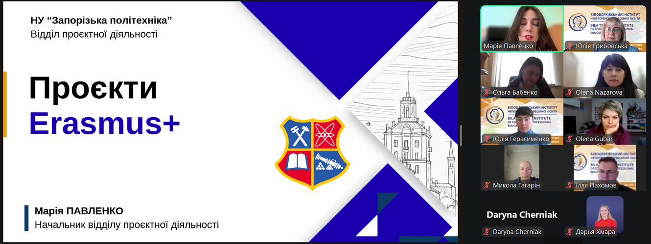 - «Програми Erasmus+. Структура проєктної заявки» – Марія Павленко, начальник відділу проєктної діяльності.