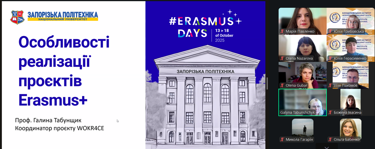 15 жовтня 2025 року науково-педагогічні працівники Білоцерківського інституту неперервної професійної освіти ДЗВО «УМО» НАПН України взяли участь у тренінгу «Написання проєктної заявки Erasmus+», у межах відзначення ErasmusDays 2025.