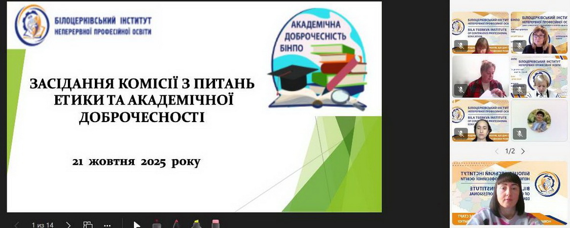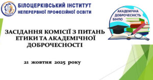 21 жовтня 2025 року у Білоцерківському інституті неперервної професійної освіти ДЗВО «УМО» НАПН України відбулося чергове засідання Комісії з питань етики та академічної доброчесності.