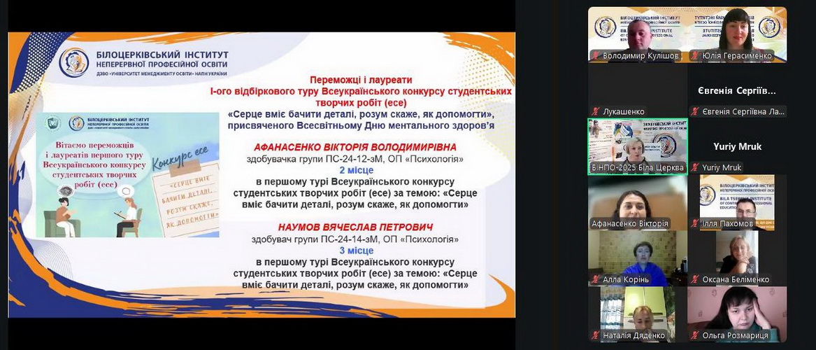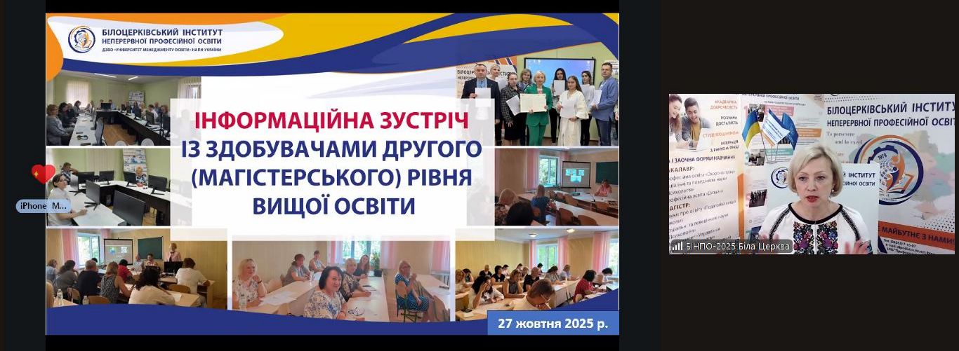27 жовтня 2025 року у Білоцерківському інституті неперервної професійної освіти ДЗВО «УМО» НАПН України відбулася інформаційна зустріч із здобувачами другого (магістерського) рівня вищої освіти за спеціальностями 011 Освітні, педагогічні науки та 053 Психологія другого року навчання.