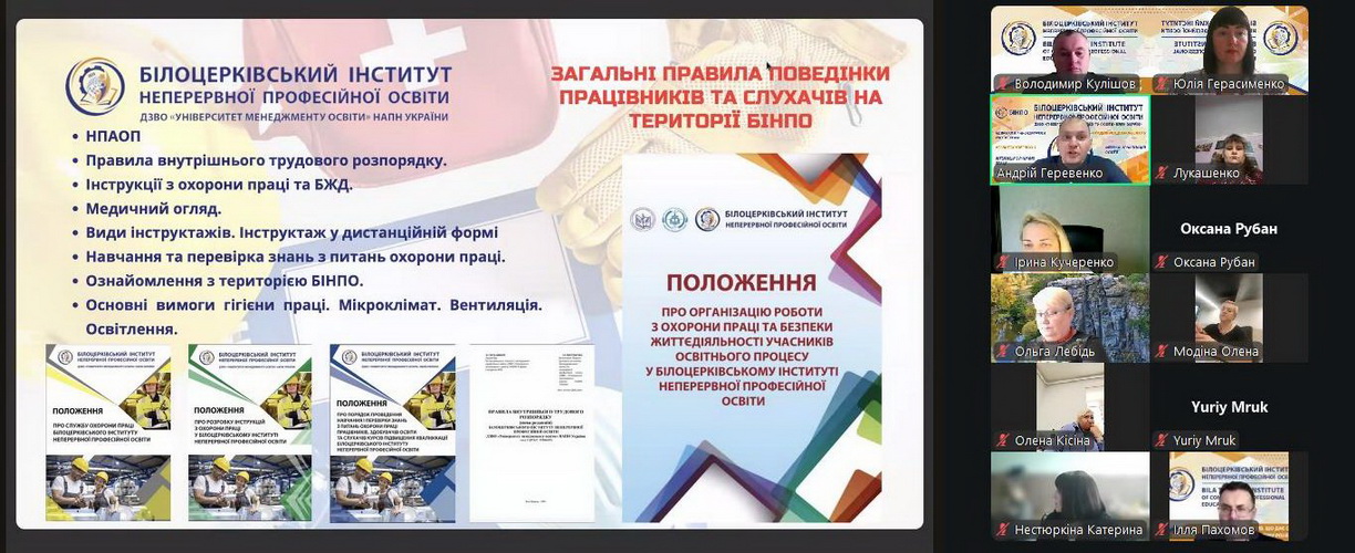Участь в інформаційній зустрічі також взяли викладачі БІНПО, які задіяні в освітньому процесі зі здобувачами освіти: Юлія Герасименко, завідувач кафедри педагогіки, психології та менеджменту, доктор економічних наук, доцент; Ірина Кучеренко, професор кафедри технологій навчання, охорони праці та інклюзивної освіти, доктор педагогічних наук, професор; Лідія Мамчур, професор кафедри педагогіки, психології та менеджменту, доктор педагогічних наук, професор; Ясміна Короход, доцент кафедри технологій навчання, охорони праці та інклюзивної освіти, кандидат політичних наук, доцент; Олена Ігнатович, професор кафедри педагогіки, психології та менеджменту, доктор психологічних наук, професор.