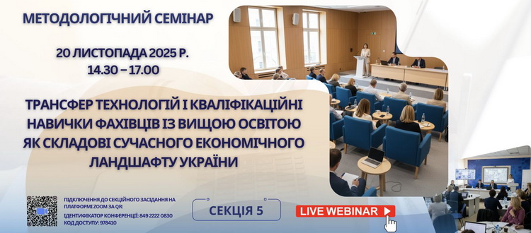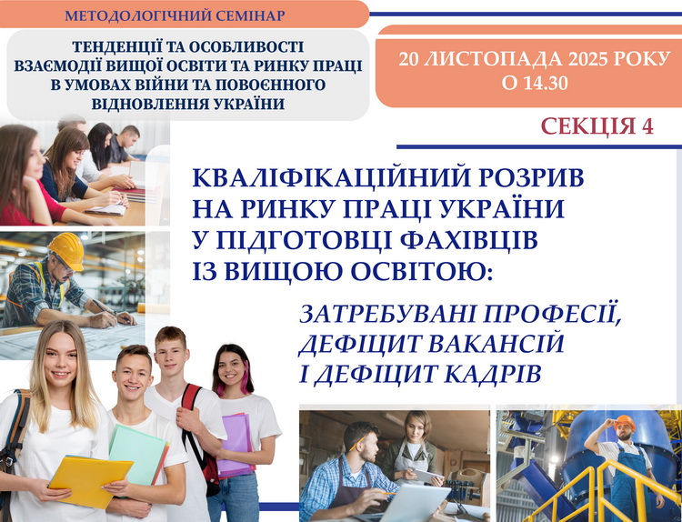 20 листопада 2025 року відповідно до плану роботи Національної академії педагогічних наук України відбудеться методологічний семінар «Тенденції та особливості взаємодії вищої освіти та ринку праці в умовах війни та повоєнного відновлення України».