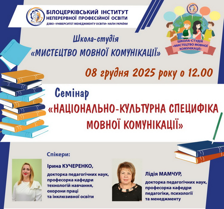 08 грудня 2025 року о 12.00 Білоцерківський інститут неперервної професійної освіти ДЗВО «Університет менеджменту освіти» НАПН України запрошує