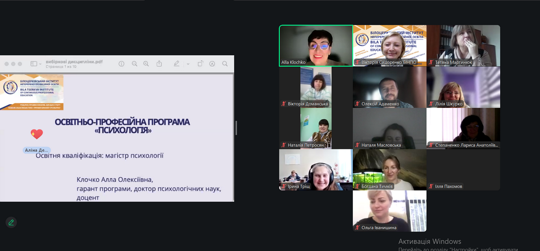 Організаційну нараду провели: Вікторія Сидоренко, директор Білоцерківського інституту неперервної професійної освіти, доктор педагогічних наук, професор; Алла Клочко, гарант ОП «Психологія», доктор психологічних наук, доцент.