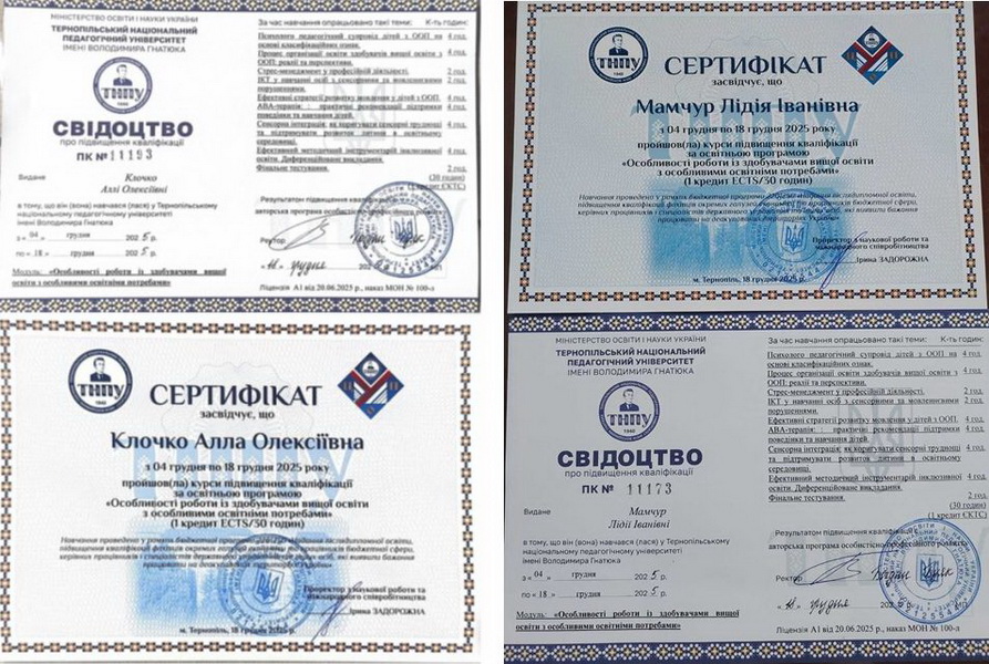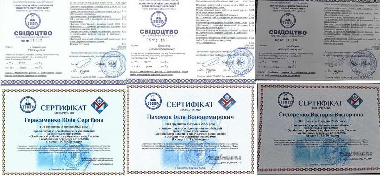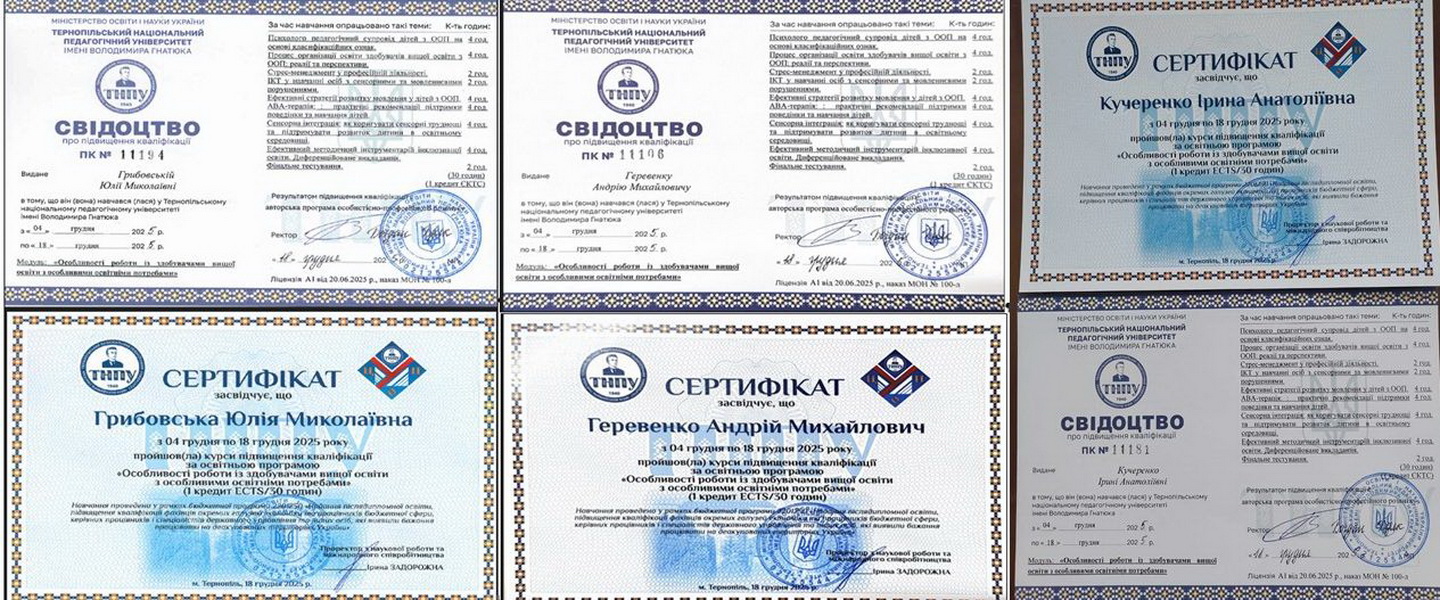 З 04 по 18 грудня 2025 року науково-педагогічні працівники Білоцерківського інституту неперервної професійної освіти ДЗВО «Університету менеджменту освіти» НАПН України успішно пройшли курси підвищення кваліфікації за освітньою програмою «Особливості роботи зі здобувачами вищої освіти з особливими освітніми потребами».