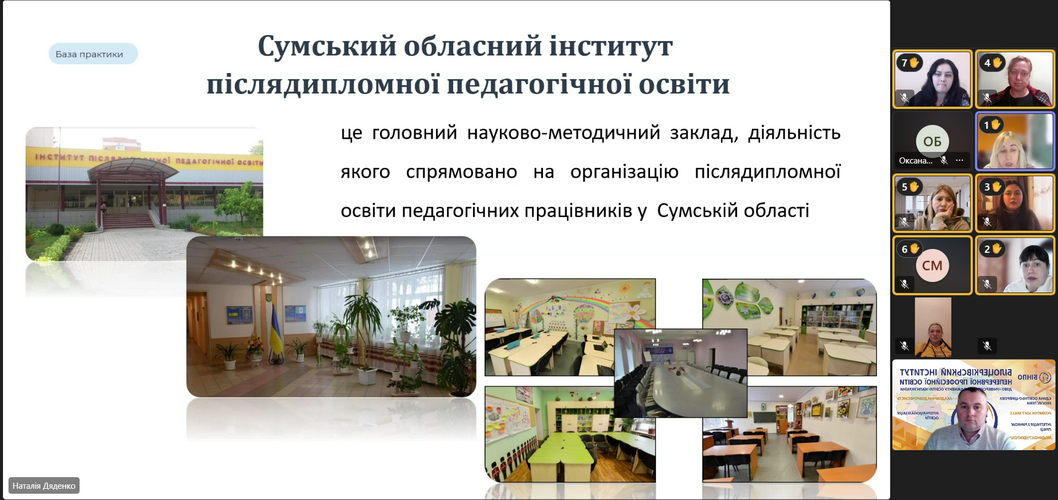 Науково-педагогічна практика проходила на базі 8 закладів вищої освіти, з якими укладено договори про співпрацю та проведення практичної підготовки здобувачів освіти: Житомирська філія ЗВО «Київський інститут бізнесу та технологій», Білоцерківський інститут неперервної професійної освіти, Київський національний університет будівництва і архітектури, Національний університет біоресурсів і природокористування України, Державне комерційне підприємство «Державний університет «Київський авіаційний інститут», Комунальний заклад Сумський обласний інститут післядипломної педагогічної освіти, Чорноморський національний університет імені Петра Могили, Комунальний заклад вищої освіти «Дніпровська академія неперервної освіти.