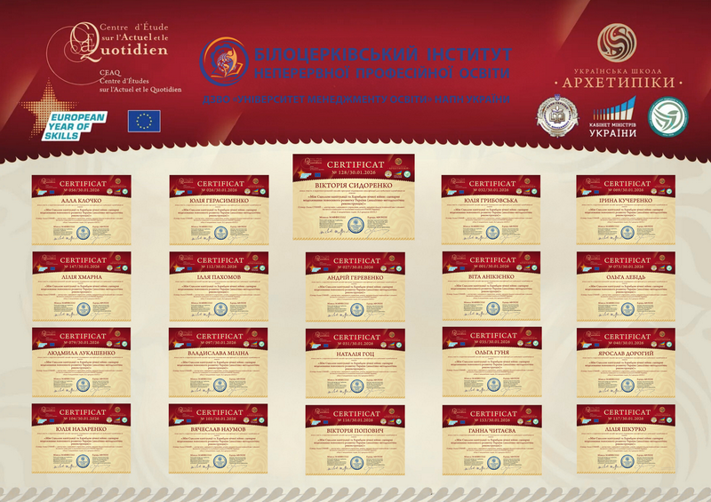 За підсумками участі у гостьовій лекції «Між Сциллою капітуляції та Харибдою вічної війни: сценарне моделювання повоєнного розвитку України» науково-педагогічні працівники і здобувачі вищої освіти Білоцерківського інституту неперервної професійної освіти отримали іменні сертифікати обсягом 6 академічних годин (0,2 кредити ЄКТС), що засвідчує підвищення рівня їх професійної компетентності та сприяє безперервному професійному розвитку.