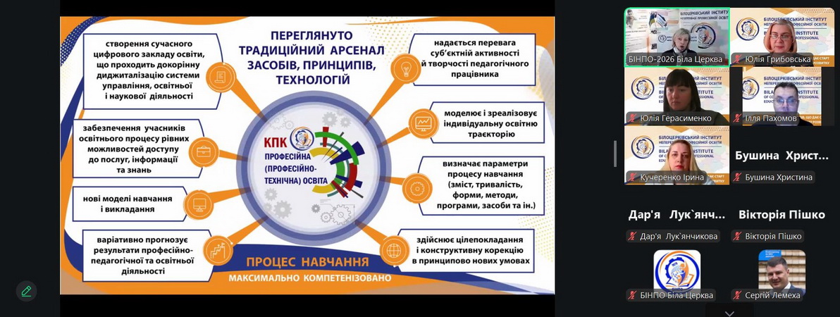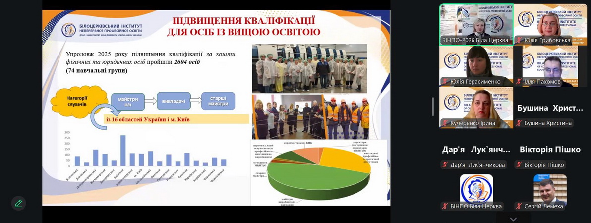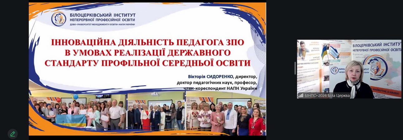 17 лютого 2026 року у Білоцерківський інститут неперервної професійної освіти ДЗВО Університет менеджменту освіти НАПН України відбулася інформаційна зустріч зі слухачами курсів підвищення кваліфікації Дніпропетровської області на тему: «Інноваційна діяльність педагога ЗПО в умовах реалізації Державного стандарту профільної середньої освіти».