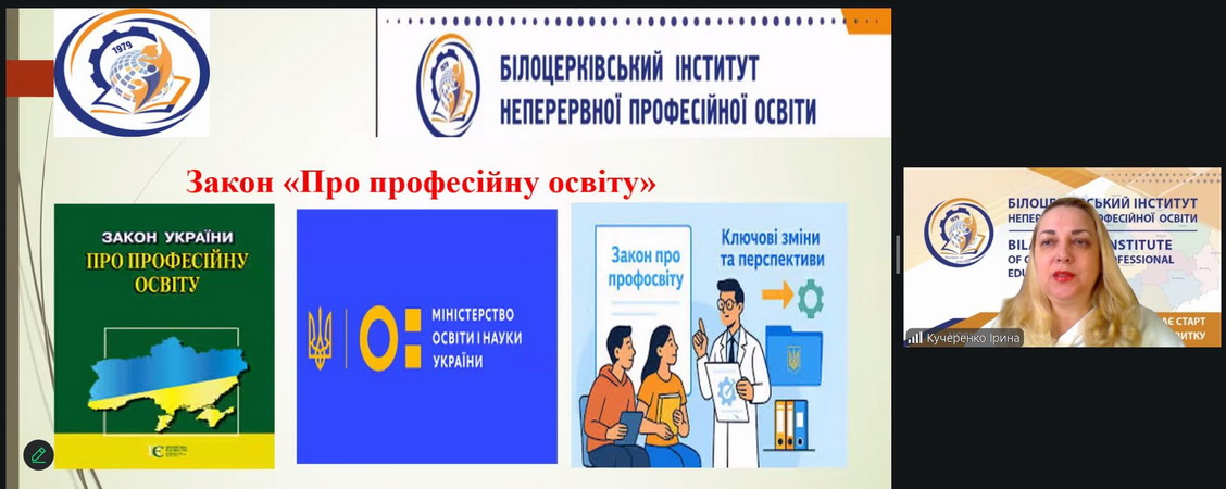Ірина Кучеренко зосередила увагу на ключових положеннях Закону України «Про професійну освіту», розкрила переваги впровадження профільної середньої освіти професійного спрямування в закладах професійної освіти та визначила пріоритетні напрями оновлення галузі. Особливий акцент було зроблено на інноваційних підходах у професійній освіті та положеннях Концепції Державної цільової соціальної програми розвитку професійної освіти на 2022–2027 роки.