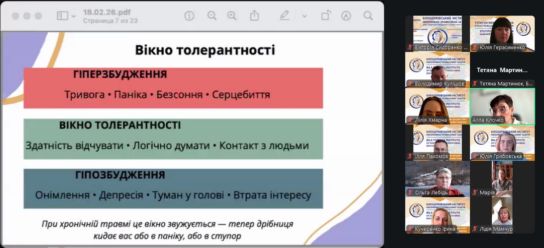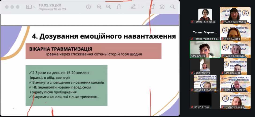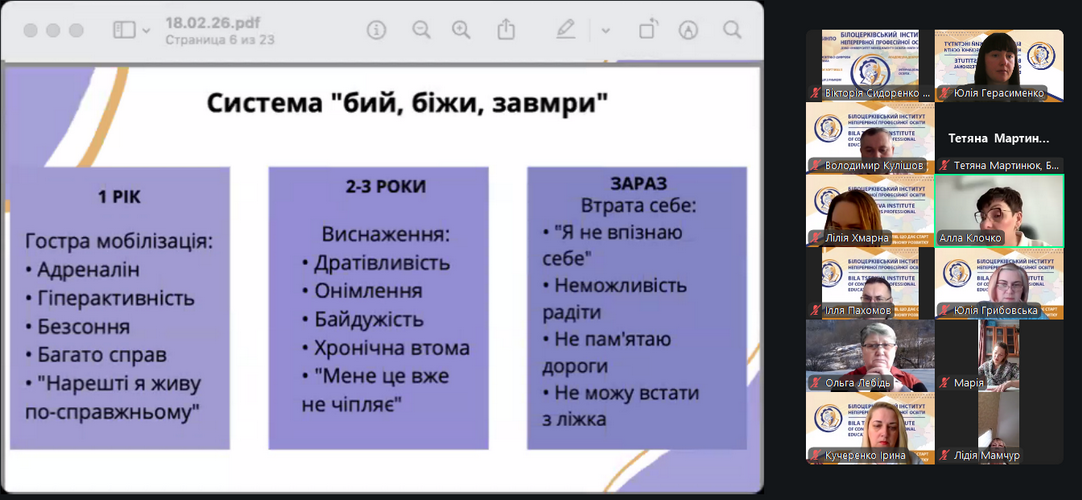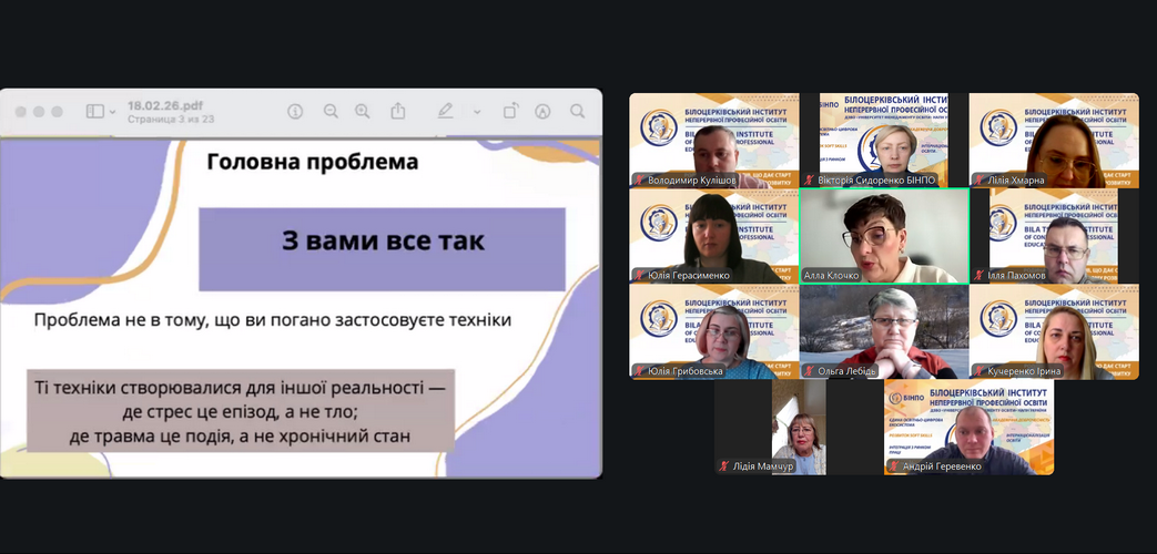 18 лютого 2026 року у Білоцерківського інституту неперервної професійної освіти в рамках діяльності онлайн-центру психологічної підтримки ReVita відбулася лекція «Психологія воєнного часу: як зберегти себе». Онлайн-центр психологічної підтримки ReVita створений для того, щоб надавати доступну психологічну підтримку тим, хто її потребує.
