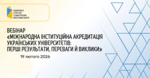 19 лютого 2026 року науково-педагогічні працівники Білоцерківського інституту неперервної професійної освіти ДЗВО «УМО» НАПН України взяли участь у вебінарі з теми: «Міжнародна інституційна акредитація українських університетів: перші результати, переваги й виклики».