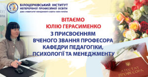 26 лютого 2026 року наказом МОН України №375 затверджено рішення атестаційної комісії про присудження вченого звання професора кафедри педагогіки, психології та менеджменту Білоцерківського інституту неперервної професійної освіти ДЗВО «УМО» НАПН України доктору економічних наук, доценту Юлії Герасименко.