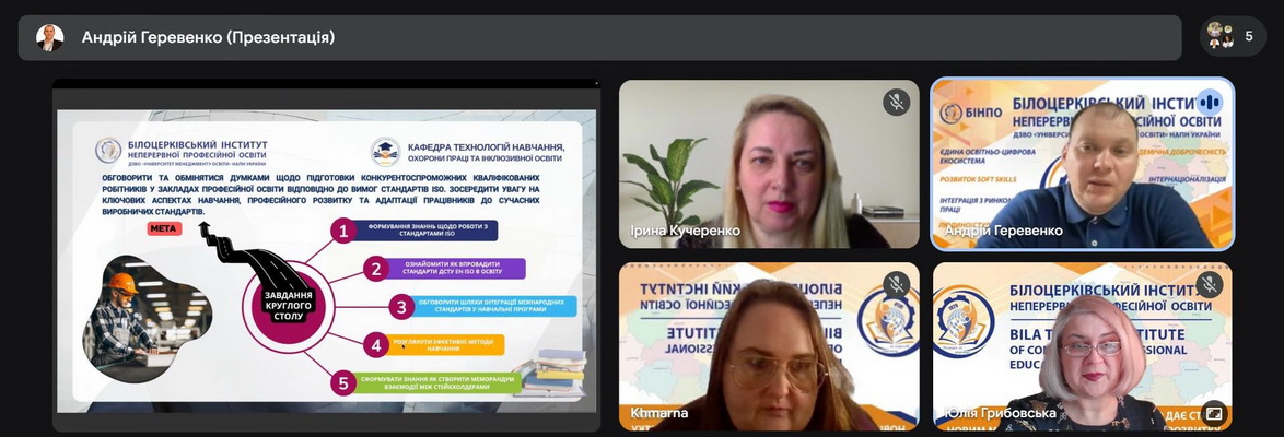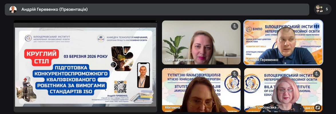 03 березня 2026 року під час засідання кафедри технологій навчання, охорони праці та інклюзивної освіти БІНПО проведено круглий стіл «Підготовка конкурентоспроможного кваліфікованого робітника за вимогами стандартів ISO».