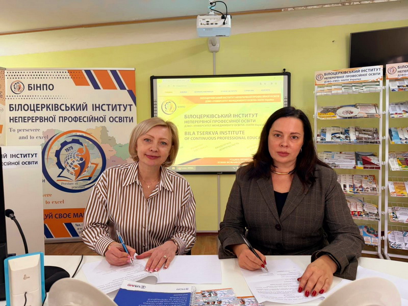 Угоду про співрацю підписано в особі Вікторії Сидоренко, директора БІНПО, доктора педагогічних наук, професора, та Наталі Редько, голови Ради з питань внутрішньо переміщених осіб при Білоцерківській міській раді.