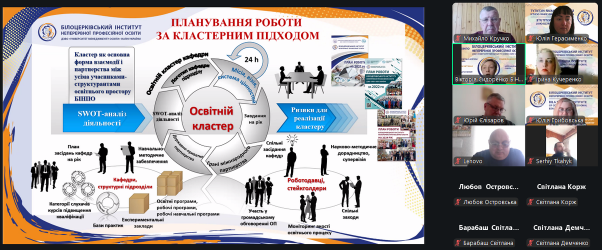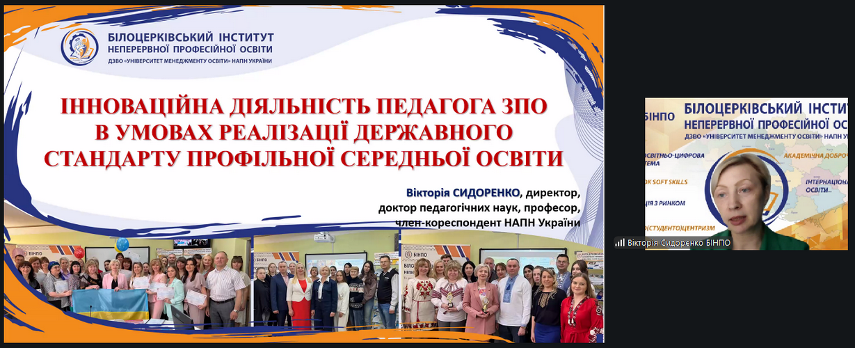 Із привітанням до учасників заходу виступила Вікторія Сидоренко. Вона акцентувала увагу на ключових пріоритетах розвитку Інституту, розкрила значення цілісної багаторівневої системи науково-методичної підтримки професійного становлення педагогів, окреслила особливості планування діяльності на засадах кластерного підходу та ознайомила присутніх із можливостями сучасного освітнього середовища і ресурсною базою БІНПО.