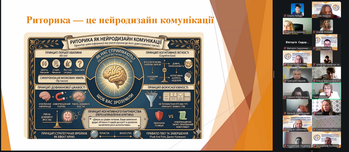 16 квітня 2026 року у Білоцерківському інституті неперервної професійної освіти ДЗВО «Університет менеджменту освіти» НАПН України відбувся семінар-тренінг «Риторичні аспекти спілкування» у рамках роботи школи-студії «Мистецтво мовної комунікації».
