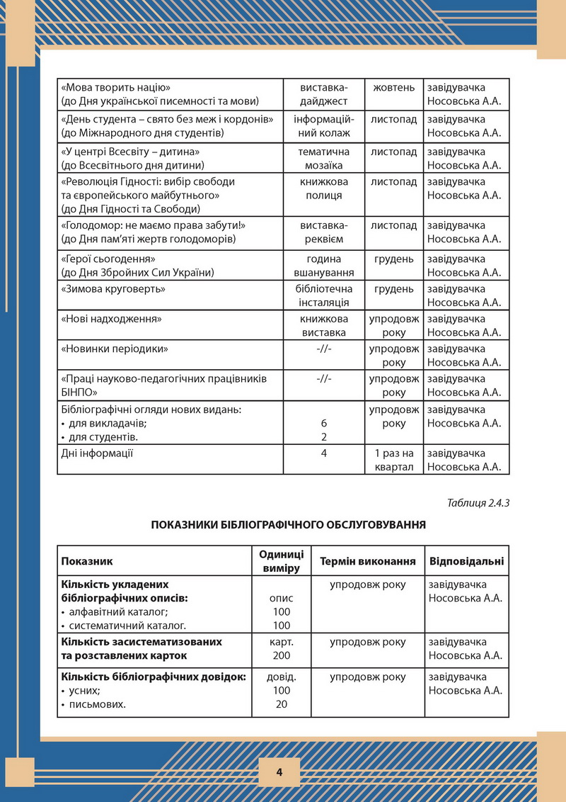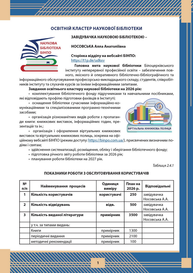 ПЛАН РОБОТИ НАУКОВОЇ БІБЛІОТЕКИ НА 2024 рік